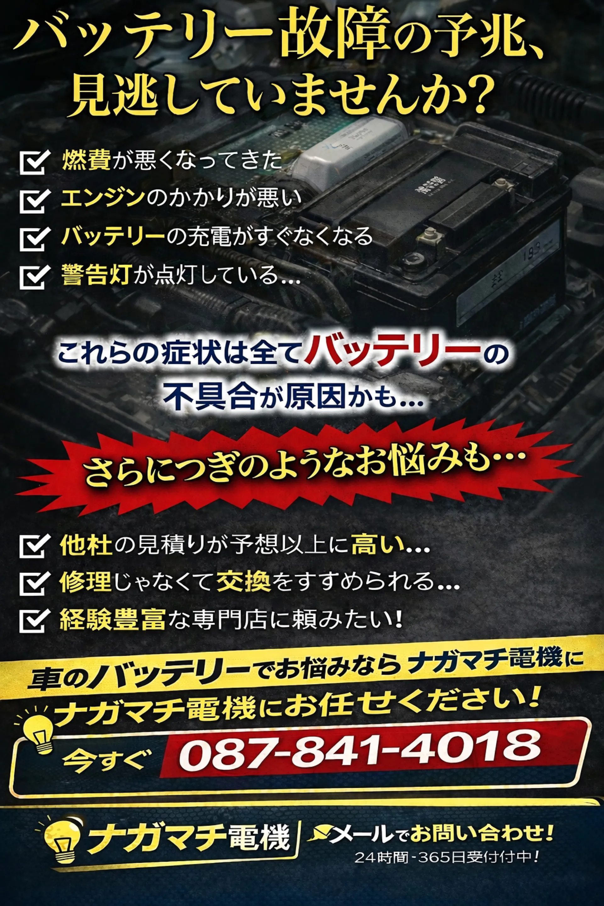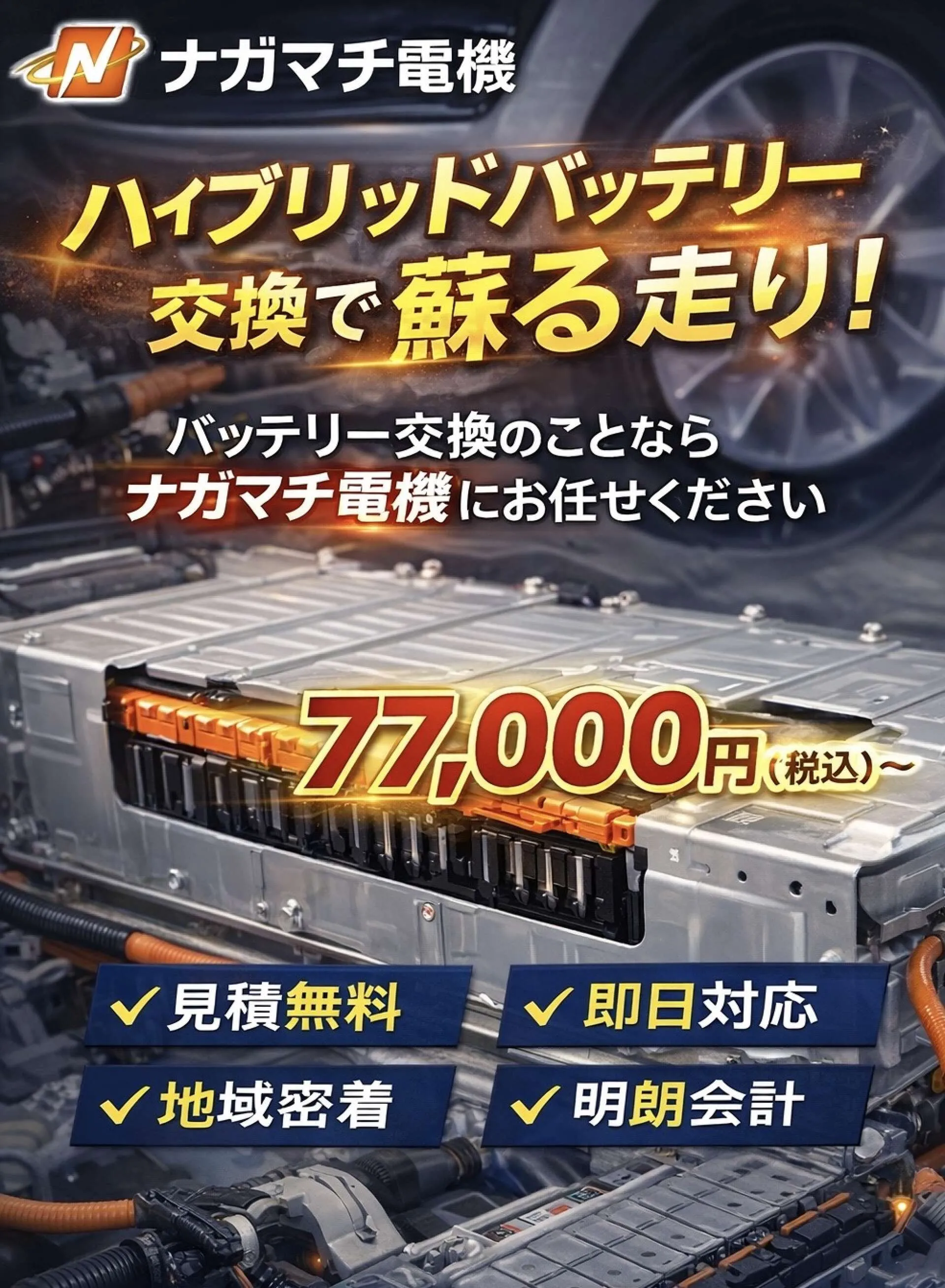 ナガマチ電機では、ハイブリッドバッテリーの状態を丁寧に確認したうえで、車両の状態に合わせた交換・修理をご提案しています。